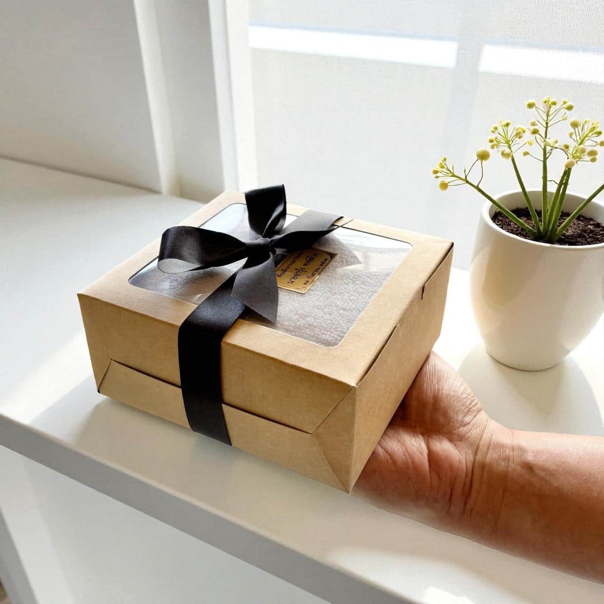 ผ้าขนหนูเช็ดผม-เกรด A cotton 100% ขนาด 15×30 นิ้ว สีขาว แพ็คกล่อง +โบว์ +สติ๊กเกอร์- รหัส SK 78